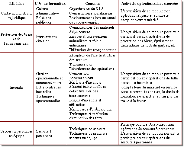 " Un module incendie (trois UV : Incendie ; Gestion Opérationnelles et Commandement ; Techniques Opérationnelle) ;